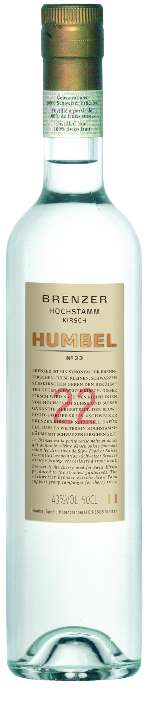 humbel_1«Lorenz Humbel – Kirschbrenner aus Leidenschaft», dieser Slogan ist Bekenntnis und Programm zugleich. Im vielfältigen Angebot der Humbel Spezialitätenbrennerei spielt der Kirsch denn auch klar die Hauptrolle. Fasziniert durch die Lektüre des Buches «Die Kirschensorten der deutschen Schweiz» von Dr. Fritz Kobelt machte sich der innovative Brenner daran, den Geschmack hunderter unterschiedlicher Kirschsorten zu ergründen. Die kleine, schwarze Brenzerkirsche hat es ihm dabei besonders angetan. Die Philosophie von Tradition und Aufbruch verkörpert übrigens schon Brennerei selbst. Wie ein Leuchtturm weist der 1918 von Max Humbel erbaute Hochkamin den Weg zum Betrieb im Stetten. Dort erwartet die Besucher ein modern gestalteter Neubau, den die dritte Generation bestehend aus Lorenz und Beat Humbel, im Jahr 2004 realisieren konnte.
